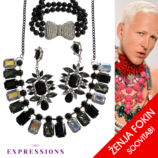Kosmos beadwork necklace and earrings sets with faceted semi-precious gemstone and glass beads combined with golden Miyuki beads – designed and crafted by Silvi Simberg (2024)